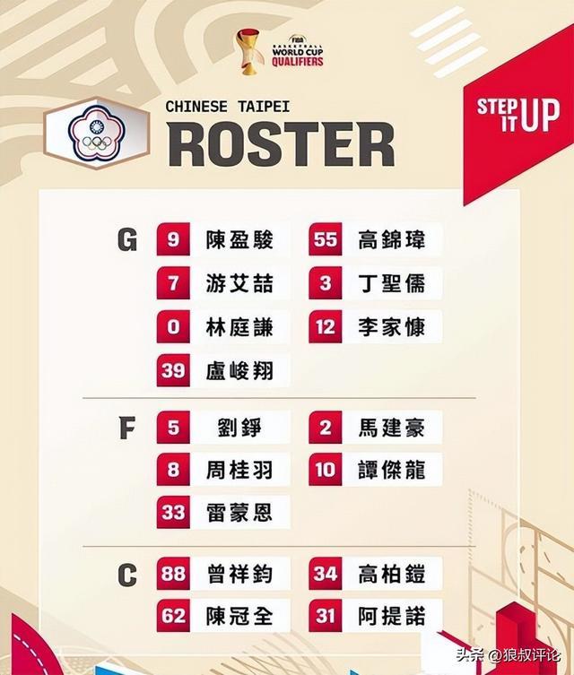 刘铮入选了中国台北队的集训名单,世预赛窗口期第二阶段,将会对阵中国男篮。