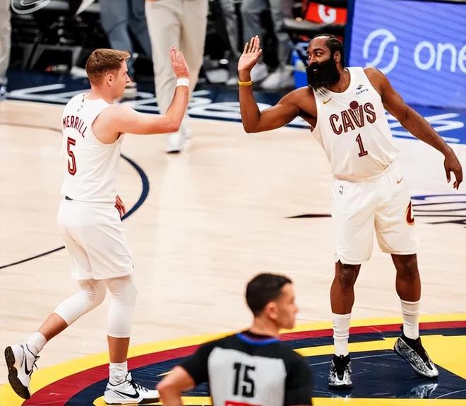 哈登的加盟让骑士的后场组合变得极具兼容性。米切尔作为持球爆破手,能撕裂防线制造空间;哈登则以组织和投射为核心,擅长利用挡拆和传球撕开对手防线。两人一攻一传、一突一投,互补性极强。更重要的是,这套组合直接激活内线的阿伦。阿伦本赛季出战34分钟,16投10中,罚球4中2,高效砍下22分13篮板1助攻的数据。在莫布里缺阵的单塔阵容下,阿伦面对约基奇的防守压力丝毫不落下风。他不仅在护框端限制了掘金的内线冲击,还在进攻端多次顺下接球终结。