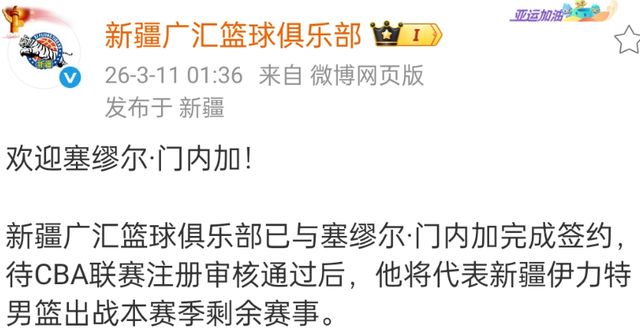 新疆男篮继续补充外援,就在和广东宏远比赛的凌晨,他们官方宣布来自新西兰的门内加已经完成了签约,正式加入球队,门内加是新疆男篮本赛季签约的第七名外援,这位身高2米06的内线还是值得期待的。