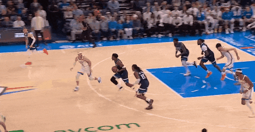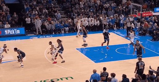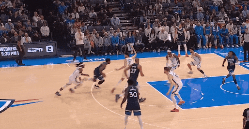亚历山大也喂三分:一个加速摆脱华兹,引戈贝尔补位,立刻给底角杰林三分。