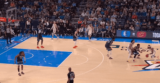 引华兹和兰德尔双人上线,卡鲁索假挡真顺下,亚历山大单手挥传,卡鲁索上篮。