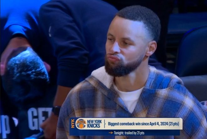 随后库里看到比赛大势已去,库里只能闭上眼睛尬笑自我安慰,此前勇士记者安东尼-斯莱德就透露,库里希望自己能复出帮助球队在附加赛冲出重围。