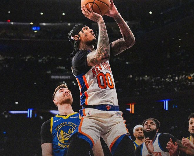 在布伦森的梳理之下,尼克斯一共有5名球员得分上双,其中唐斯后两节触底反弹,四节战罢将自己的命中率提升到了12投7中,砍下了17分和12个篮板的两双数据,替补登场的克拉克森也有14分进账。