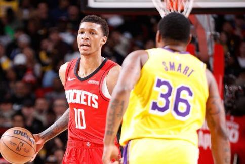 首节比赛,两队就展开拉锯战,比分你追我赶交替两次,第一节比赛结束,湖人29-28领先火箭1分。次节比赛开始,里夫斯电光上篮转瞬终结,帮助湖人队先下一城,史密斯的底角三分发炮立马予以还击,拉拉维亚踏雪无痕抢到进攻篮板强势补篮命中,史密斯手感火热,定点大号三分再进一球,拉拉维亚三大步冲击内线制造杀伤,站上罚球线两罚全中,卡佩拉不甘示弱,禁区吃饼高举高打,打成一个2+1,杜兰特标志性的急停干拔跳投两分落袋,史密斯蜻蜓点水飞身补篮打进一球,此后一段时间,湖人进攻效率有所下滑,火箭趁机占据主动权,取得5分以上领先优势。
