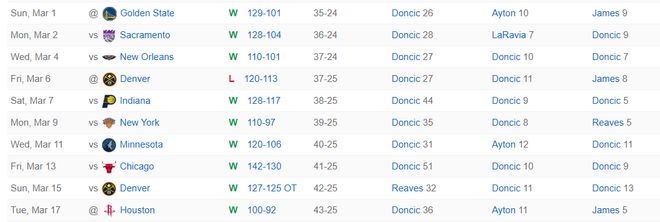 东契奇这场比赛40分钟,27中14,三分12中4,罚球5中4,拿到36分6篮板4助攻2抢断4失误,命中率51.9%,三分命中率33.3%,真实命中率61.6%,正负值+6。湖人全队才100分东契奇一人占比全队36%已经非常恐怖。