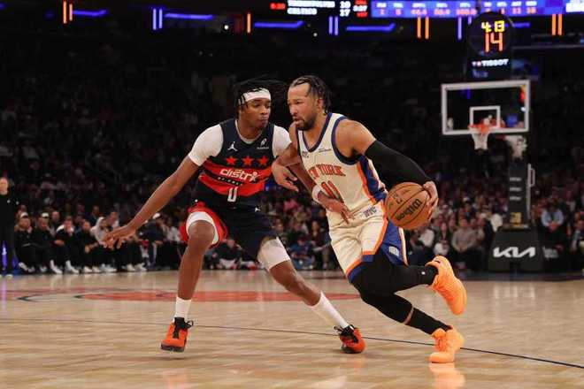 尼克斯过去5场豪取5连胜,奇才过去15场遭遇15连败,本赛季前两次交锋尼克斯均战胜奇才。本场奇才缺少特雷-杨、浓眉哥与乔治等,尼克斯缺少麦克布莱德、沙梅特。首节开局尼克斯8-3领先,奇才反扑追到仅差1分,尼克斯一波9-2攻势扩大优势。奇才追回3分,尼克斯连得5分扩大10分优势,哈特三分开火扩大27-16领先。奇才回敬一波11-5攻势追分,首节结束尼克斯32-27领先奇才。首节尼克斯三分8中4,布伦森12分;奇才三分11中4。