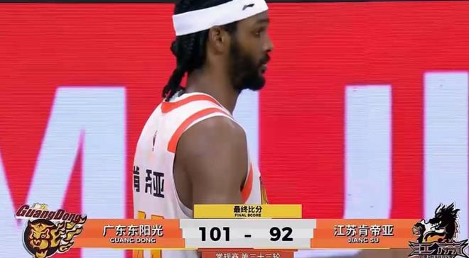 凭借嘉哥和萨老英雄拿到的关键6分,最后一分半钟,广东队101-89基本锁定胜局,接下来广东队没有再给江苏队机会,最后以101-92小胜江苏,拿下二番战复仇之战。
