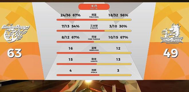 后半节家政重新回归,奎因抢断助攻徐杰上篮,张皓嘉2罚全丢但也造了亨特贾尔斯2个失误,在嘉哥“强大的内线防守震慑下”(其实萨林杰才是真正关键),江苏出现了得分断电,节末奎因再度接管比赛,里突外投率队再打出一波17-11,广东单节打了江苏一个35-17,半场9人轮换以63-49领先江苏。