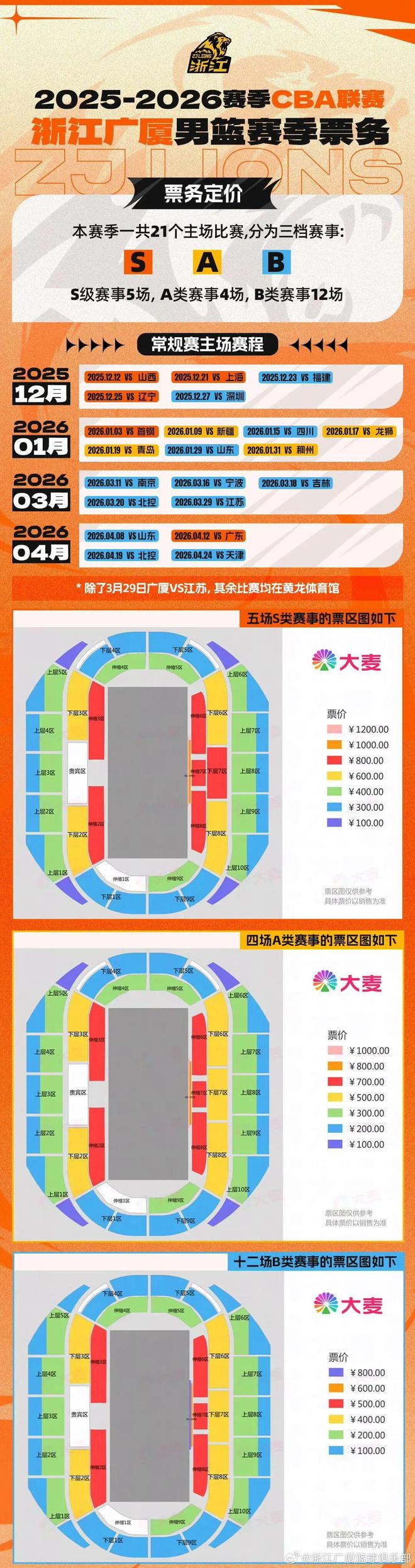 票价档位:这两场赛事分别为山东(B类)、广东(S类),均设置多档票价,满足不同球迷观赛需求,具体票价及座位分区可查看下方海报或前往购票平台查看详情,无论身处哪个区域,都能沉浸式感受赛场热血氛围。