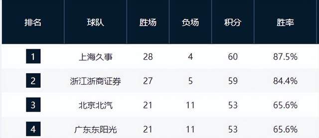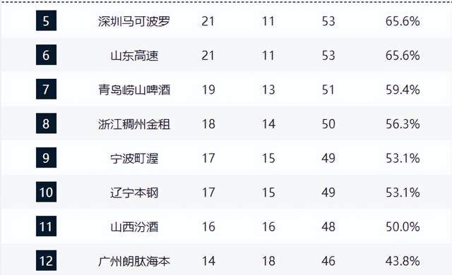 青岛国信与浙江稠州银行分列第七、第八,本轮双双取胜,排名未动。两队近10场均取得6胜4负,表现稳健但缺乏突破性提升,已基本锁定季后赛边缘席位,难再冲击更高排名。
