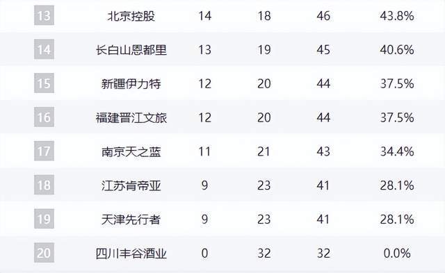 江苏肯帝亚与天津先行者本轮再败,距离第12名仍有5个胜场差距,基本退出竞争。四川金强则遭遇联赛历史性的32连败,赛季已无悬念。