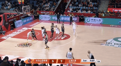 这是怎么回事呢?来看看第一节发生了什么,首节开局阶段,洛夫顿上来就和前队友威尔逊较上劲了,2分钟内连续出手2次砍下2分2板,但也出现了2次失误,第一节进行到7分07秒,上海队发前场边线球,洛夫顿在要位的过程中和威尔逊又发生了接触,洛夫顿抬肘击中了威尔逊下巴被裁判吹罚进攻犯规。