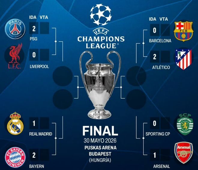 本赛季的欧冠四分之一决赛首回合比赛都已经结束,4支在主场作战的球队,有3队输球。其中皇马1-2拜仁,葡萄牙体育0-1阿森纳,巴萨0-2马竞,只有巴黎守住了主场,2-0挑落利物浦。第一回合比赛结束后,马竞、拜仁、阿森纳以及巴黎占据晋级主动权,其中马竞最有可能打入半决赛。因为马竞在客场净胜巴萨2球,回到大都会球场后,床单军团还有主场优势。