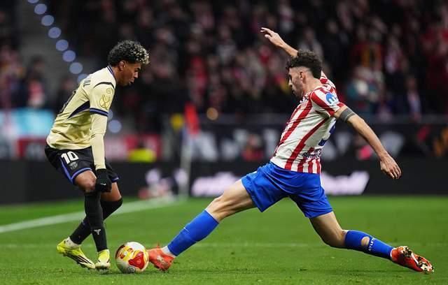 不过,马竞的鲁杰里却成功阻挡亚马尔的脚步。