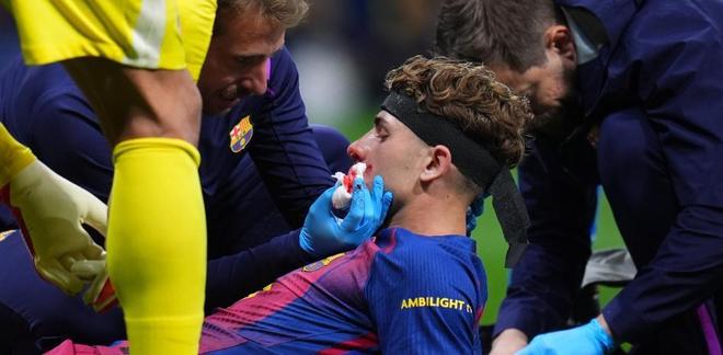在那次碰撞中,巴萨球员血流满面。这位马竞门将的鞋钉击中了费尔明的面部,导致他大量出血,比赛甚至不得不暂停以便他接受医疗救治。