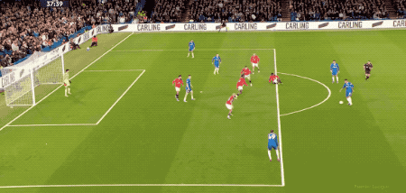 值得注意的是,这仅仅是曼联本场比赛的第2次射门而已,而切尔西上半场完成了6次射门。