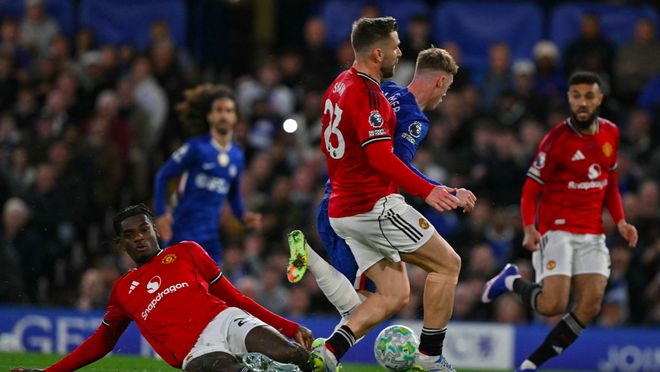 下半场开始后,曼联率先发难,库尼亚巧妙做球,B费禁区外射门没能命中目标。