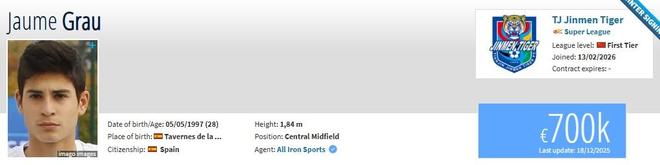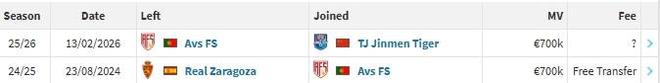 北京时间2月14日,德转更新,葡超阿维什镇中场豪梅-格劳加盟天津津门虎。