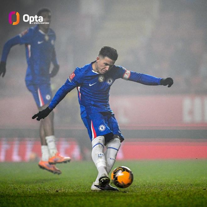 据统计,恩佐-费尔南德斯在为切尔西出战的7场足总杯比赛中斩获3球2助攻,每99.8分钟直接参与1球。