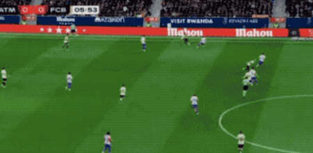 上半场补时阶段,巴萨又丢球了,卢克曼投桃报李倒三角传球,阿尔瓦雷斯冷静将球打进。