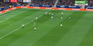 第45+3分钟,打花了!阿尔瓦雷斯禁区前抽射破门,马竞4-0巴萨
