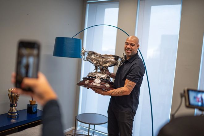 在这些奖杯中,阿德里亚诺还看到了圣地亚哥·伯纳乌杯,那是他在2001年夏天凭借一记惊世骇俗的任意球帮助球队在马德里捧起的。那天,全世界第一次见识到了这位未来“蓝黑国王”的非凡天赋。