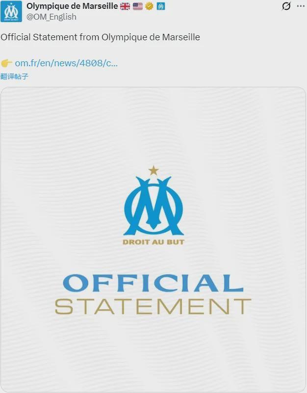 官方:马赛宣布解雇了德泽尔比。