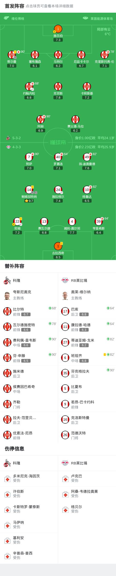 莱比锡客场2-1科隆,鲍姆加特纳双响,蒂尔曼破门