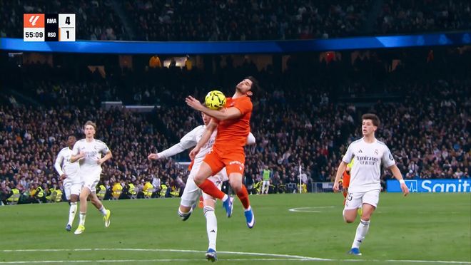 半场回来不到一分钟,阿兰布鲁禁区再度放倒维尼修斯,裁判又给了一粒点球,维尼修斯再度主罚命中,4:1!大比分领先后,皇马逐渐做出换人调整,卡瓦哈尔、阿拉巴披挂登场。而皇家社会同样针对性地做出调整,并且在针对维尼修斯的防守方面,做出部署。