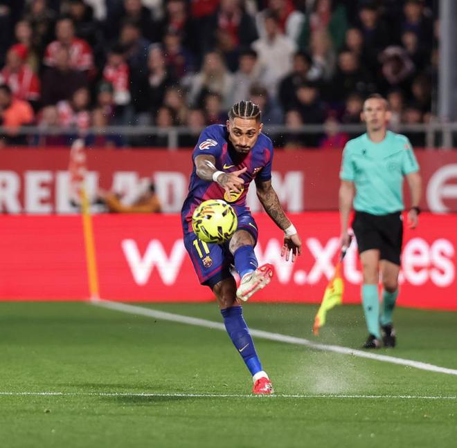 比赛开打之后,实力更强的巴萨就反客为主,压着赫罗纳猛攻,第6分钟亚马尔接到拉菲尼亚左路倒三角传中后,直接起脚兜射远角,但皮球没有命中目标,擦着远侧立柱出了底线,第17分钟巴萨再次打出边中结合,拉菲尼亚禁区内扣过防守球员后,打近角再次出了底线。