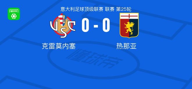 克雷莫内塞0-0热那亚,双方破门乏术