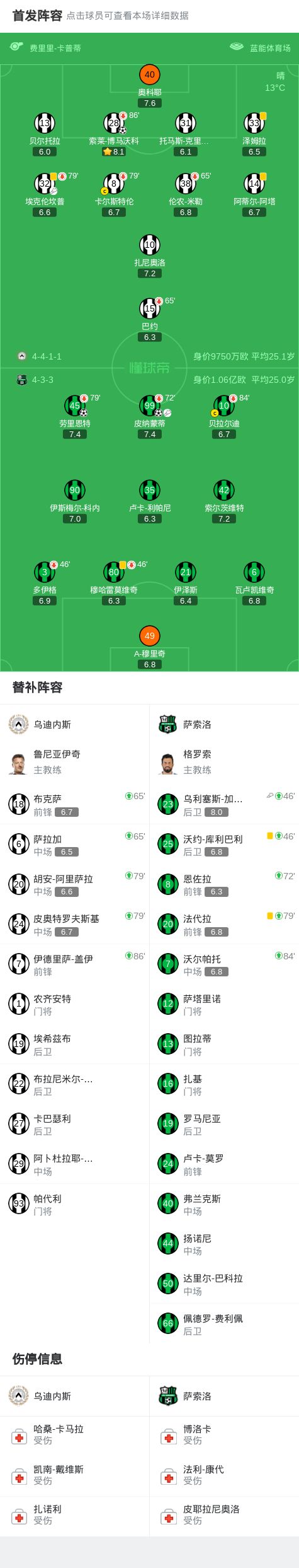 第10分钟,乌迪内斯球员埃克伦坎普助攻索莱-博马沃科打入一球。