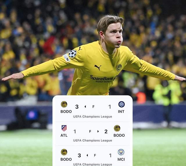 本赛季欧冠,博德闪耀开局并不出彩,联赛阶段前6轮,博德闪耀一胜难求,濒临出局。不过最后2轮,博德闪耀如同开挂,主场3-1击败曼城,客场2-1拿下马竞,8战9分-1个净胜球排名第23位,拿到附加赛资格,遇到上赛季欧冠亚军国米。