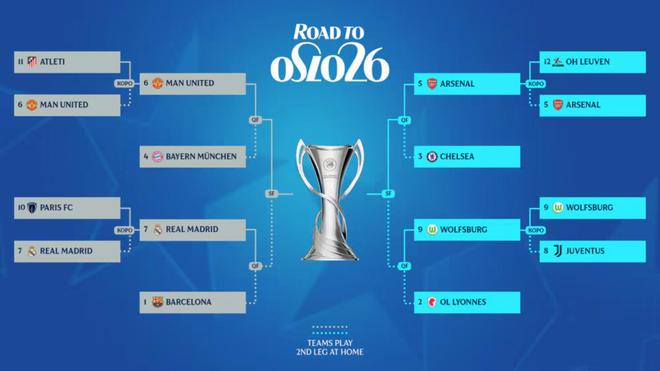 女足欧冠1/4决赛:皇马vs巴萨,阿森纳vs切尔西,曼联vs拜仁