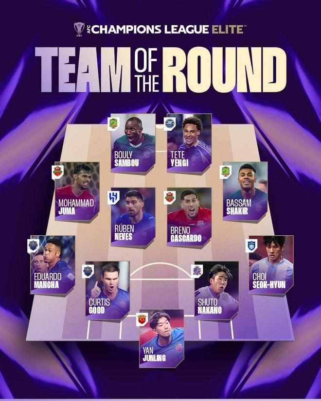 本轮亚冠精英最佳阵容:颜骏凌、鲁本-内维斯、泰特-延吉在列