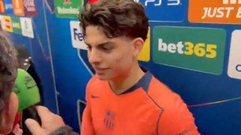 欧冠1/8决赛首回合,巴萨客场1-1战平纽卡,本场比赛上演巴萨一线队首秀的埃斯帕特赛后在混采区接受了采访。