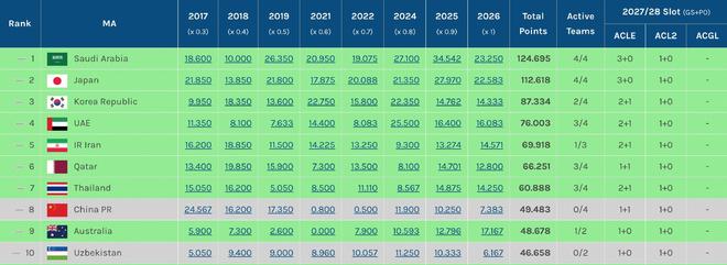 随着墨尔本城被武里南联淘汰,无缘亚冠精英联赛八强,澳超的技术积分仍差中超0.3分,且全军覆没。2027-28赛季,中超将继续保留三个亚冠席位,分别是一个亚冠精英联赛正赛,一个亚冠精英联赛附加赛,一个亚冠二级联赛正赛。