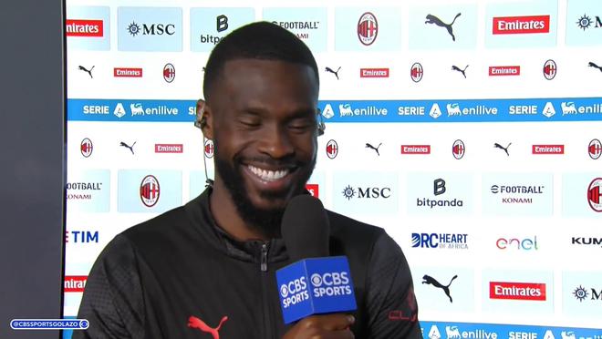 那么,我现在正和米兰的中后卫菲卡约-托莫里在一起,我们可以用英语进行交流,这可真是太棒了,那么请告诉我,你们赢得了这场比赛,意甲冠军的希望仍然存在,对吧?