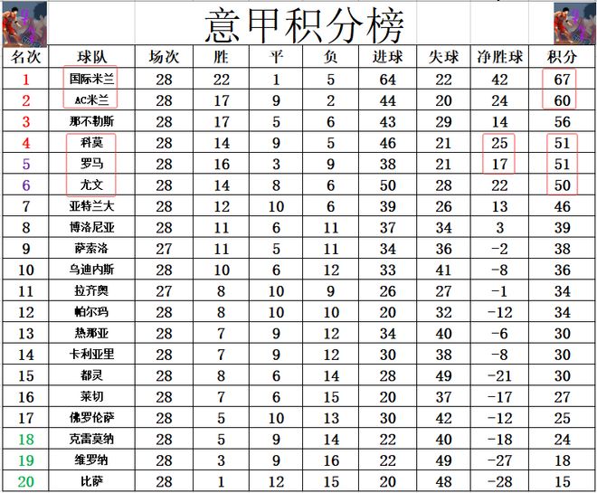 积分榜方面,AC米兰今天击败国米后,多少还是挽留了些争冠悬念,将和国米的分差拉回到个位数,10轮追7分还是有机会的。那不勒斯差国米11分排在第3。争四很激烈,黑马科莫净胜球优势力压罗马位列前4,尤文1分之差排在第5。