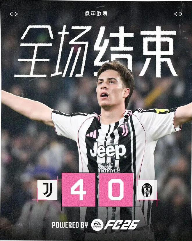 北京时间3月8日凌晨3点45分,尤文图斯主场迎战联赛“副班长”比萨。上半场比赛,比萨球员莫雷奥头球被佩林神勇化解,双方互交白卷。下半场比赛,伊尔迪兹传中,坎比亚索顶空门得手先下一城,图拉姆补射建功,伊尔迪兹破门,博加过掉门将推射打进一球。最终,尤文图斯4比0大胜比萨,距离身前的罗马只有1分之差。