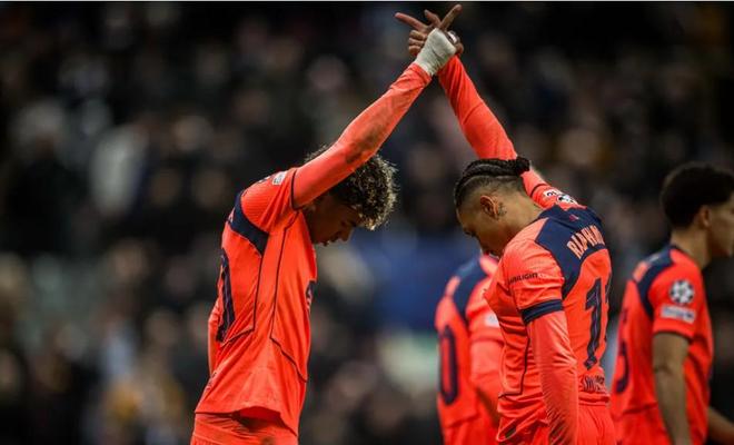 本场比赛第86分钟,墨菲传中,哈维-巴恩斯中路跟进推射破门,补时最后时刻,奥尔莫禁区被佳夫绊倒造点,亚马尔主罚命中,最终巴萨客场1-1战平纽卡。