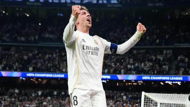 在周三欧冠皇马3-0大胜曼城的比赛中,费德里科・巴尔韦德上演帽子戏法。特伦特・亚历山大-阿诺德称他是“地球上最被低估的球员”,主帅阿尔瓦罗・阿韦洛亚则称他为“标杆”。