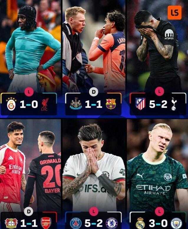 就目前的发展情况来看,英超竞争力和商业价值是超过其他联赛的。很直观的一个例子就是热刺了,他们目前在联赛为了能保级苦苦作战,而在欧冠联赛阶段直接晋级淘汰赛。这样一看你的保级队的实力都这么强,其他排名靠前的简直难以想象。还有在本赛季英超,副班长狼队既能打平领头羊阿森纳,还能直接战胜上赛季的冠军利物浦。英超也对很多球星的吸引力巨大,在有不同选择时他们总是会选择英超。这也不怪多数人觉得英超目前的实力独一档,但这次的淘汰赛给他们泼了一盆凉水。欧冠1/8决赛首回合全部结束,英超6队交出了一份无一胜绩的成绩单,创造了欧冠改制以来英超球队在该阶段的最差纪录。在首回合英超6支球队均未能掌握晋级主动权,其中4支球队处于落后局面,3支球队首回合落后3球及以上,翻盘难度陡增,本赛季英超球队的欧冠八强晋级前景真的是非常不容乐观。