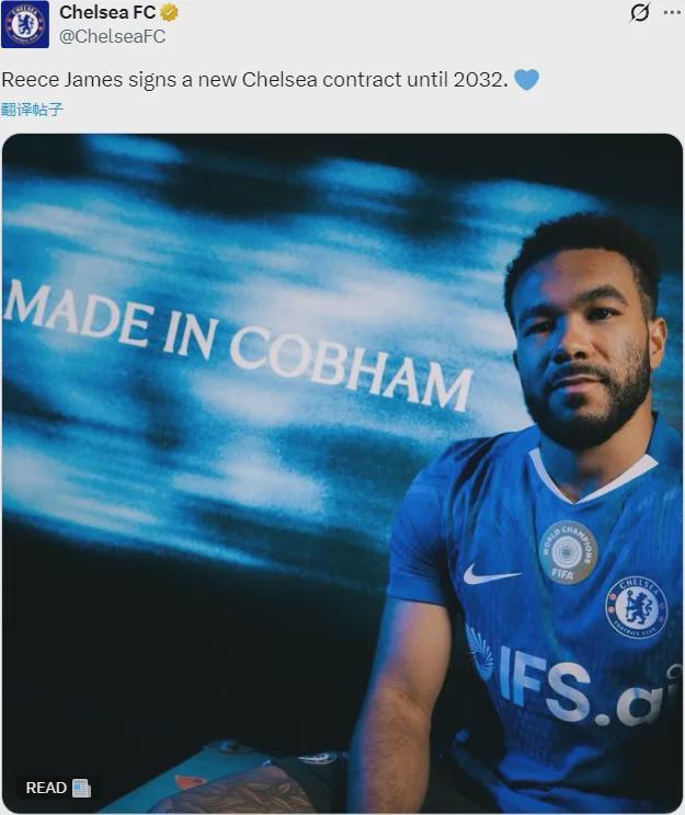 官方:切尔西宣布和里斯-詹姆斯续约到了2032年。