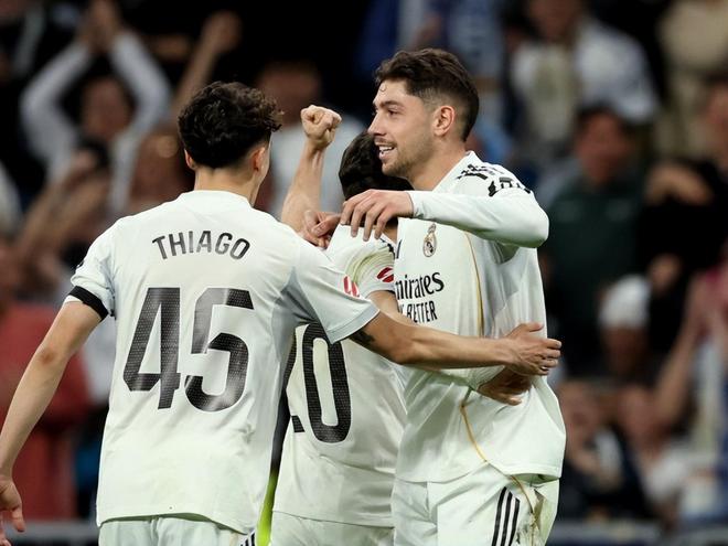 第85分钟,卡马文加后场传球失误,曼努埃尔-安赫尔不慎自摆乌龙,3:1!第89分钟,皇马后场断球,居莱尔自家半场距离球门60米开外超远距离吊门,皮球在空中划出一条美妙弧线坠入球网,4:1!全场伯纳乌球迷亲眼目睹了这粒精彩的超远吊射,阿韦罗亚场边也是看的目瞪口呆;最终皇马主场4球横扫埃尔切,与巴萨的分差缩小到1分;而曼城本轮英超又未能赢球,次回合的欧冠淘汰赛,银河战舰的晋级希望也进一步增大。