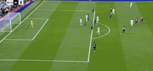 第39分钟,皇马获得任意球,维尼修斯一拨,巴尔韦德标志性起脚怒射,门将将球扑出,皮球来到吕迪格身前,德国后卫不停球撩射,打破僵局。