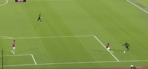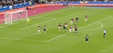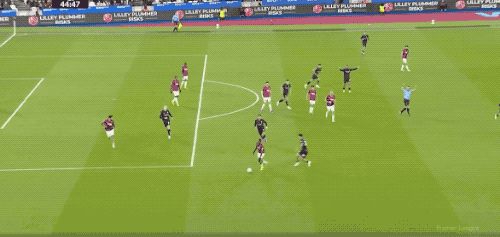第5分钟,努里在左路上演精彩的过人秀,西汉姆联球员前仆后继,完成拦截。