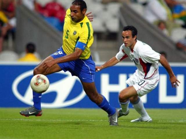 顶替埃莫森出任队长的右后卫卡福,站在领奖台上,稳稳地举起了那座金光闪闪的大力神杯,成就了自己“巴西跑不死”的传奇。