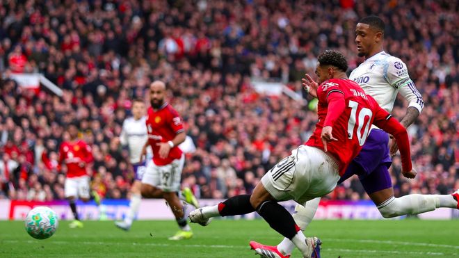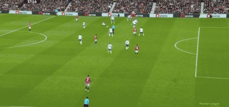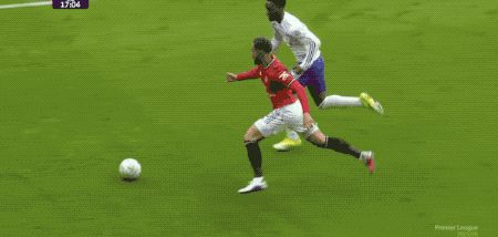 第21分钟,B费开出角球,马奎尔头球摆渡,阿玛德的头球攻门颇具威胁,马丁内斯飞身将球挡出。
