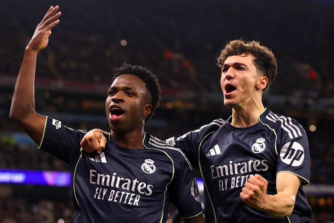 第93分钟,琼阿梅尼传中,这一次,维尼修斯不再越位,梅开二度。